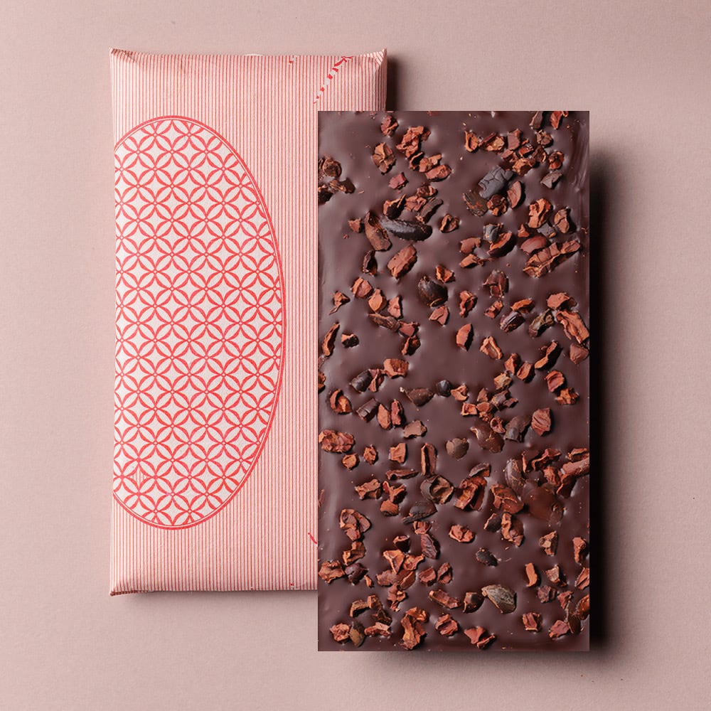 口の中で食感、香り、苦みなどカカオ豆本来の味わいがさらに楽しめるおすすめの逸品。