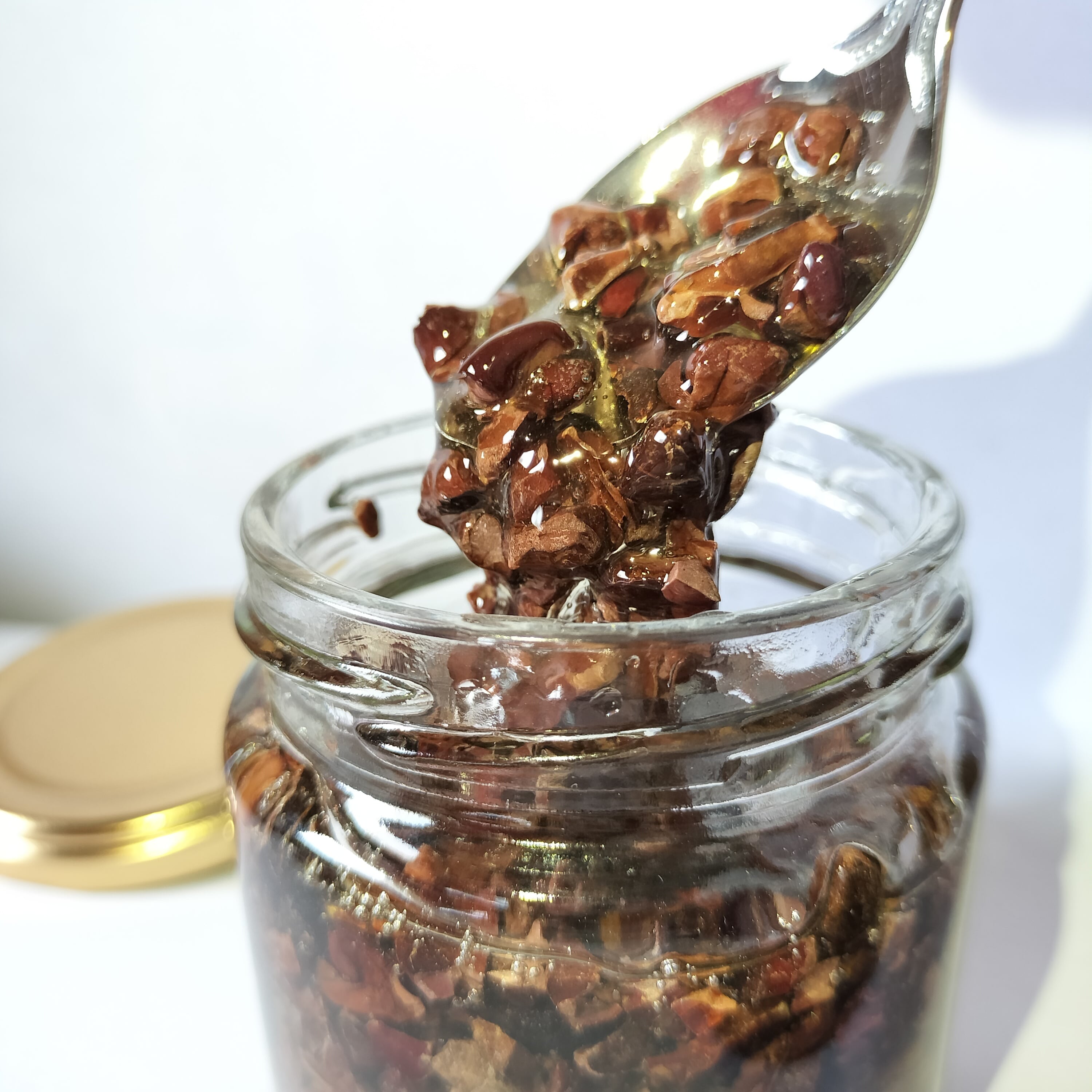 カカオの香りと蜂蜜の甘みが調和したヘルシースイーツです。ナッツの蜂蜜漬けのように、カカオ版の蜂蜜漬け、ぜひお試し下さい。